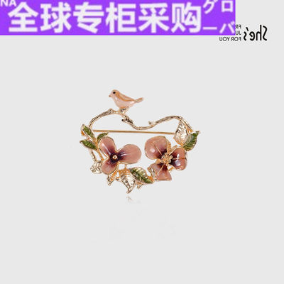 日本iu惠shes茜子饰品简约鸢尾花朵心形胸针胸花趣味小鸟别针配 虎窝淘